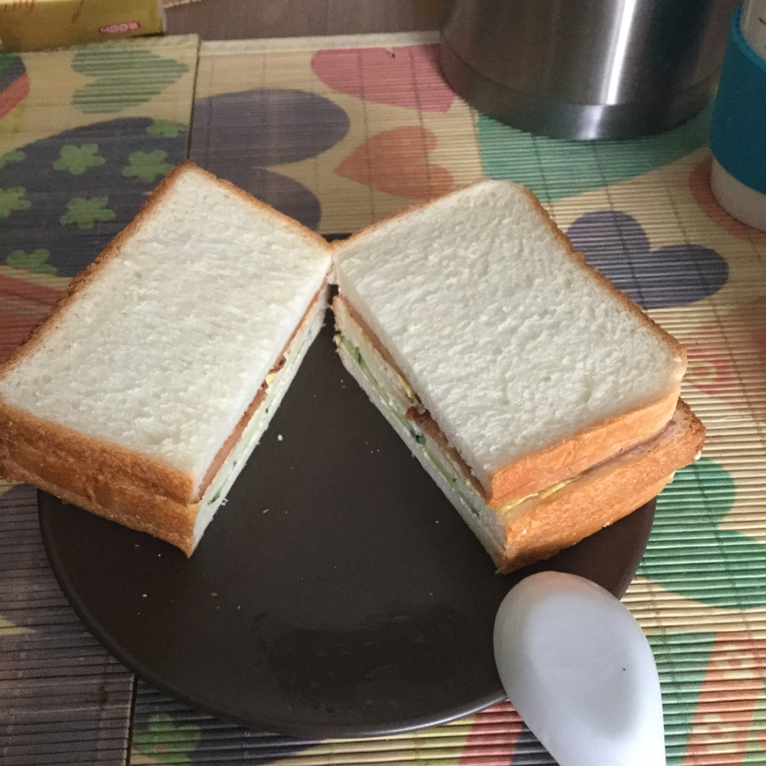 今天加班,六点起来做的早餐,葱花饼,煎火腿,煎鸡蛋,燕麦包谷面糊糊!满满的都是爱