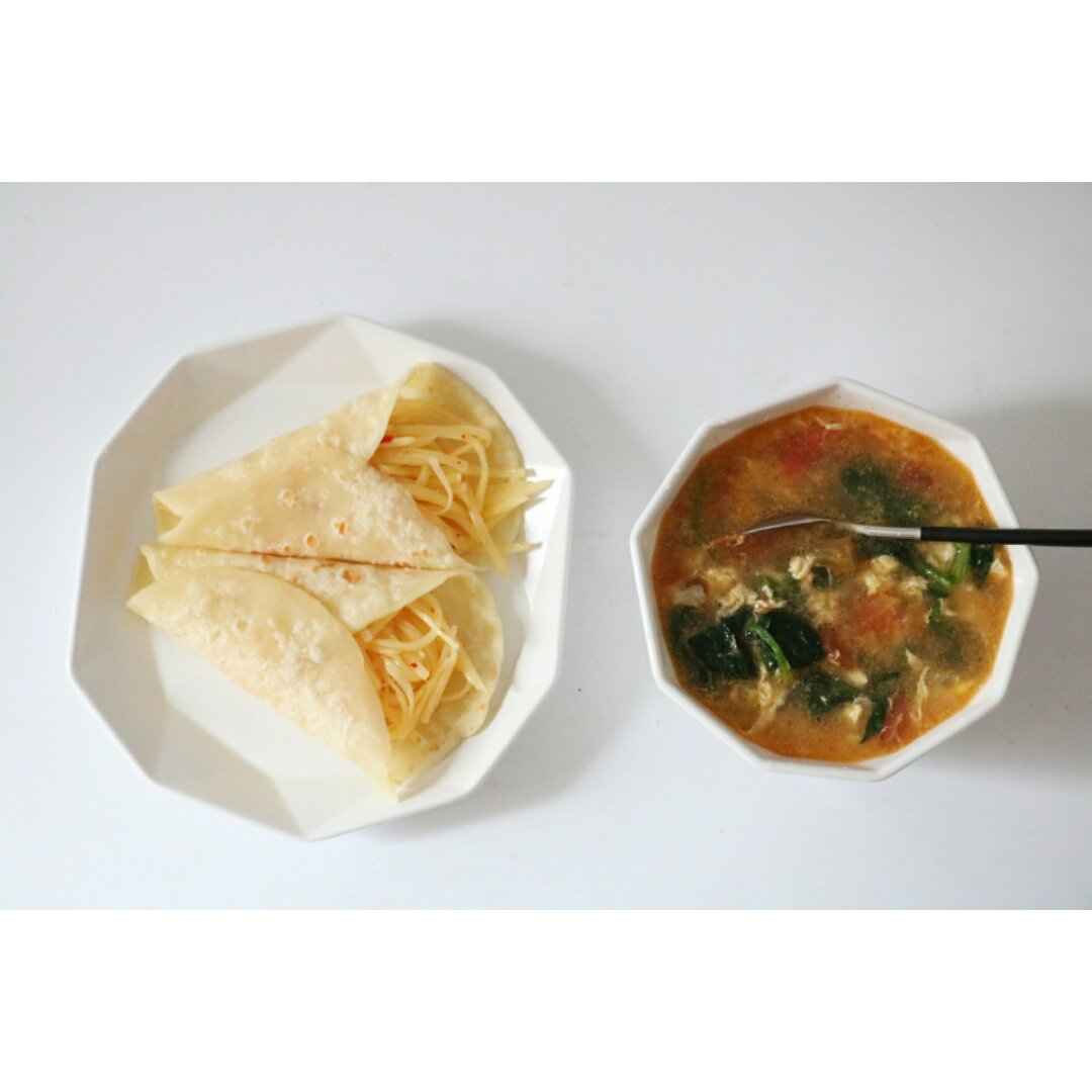 这一早,又和面又烙饼又炒土豆丝又做汤又做便当,真是忙死了