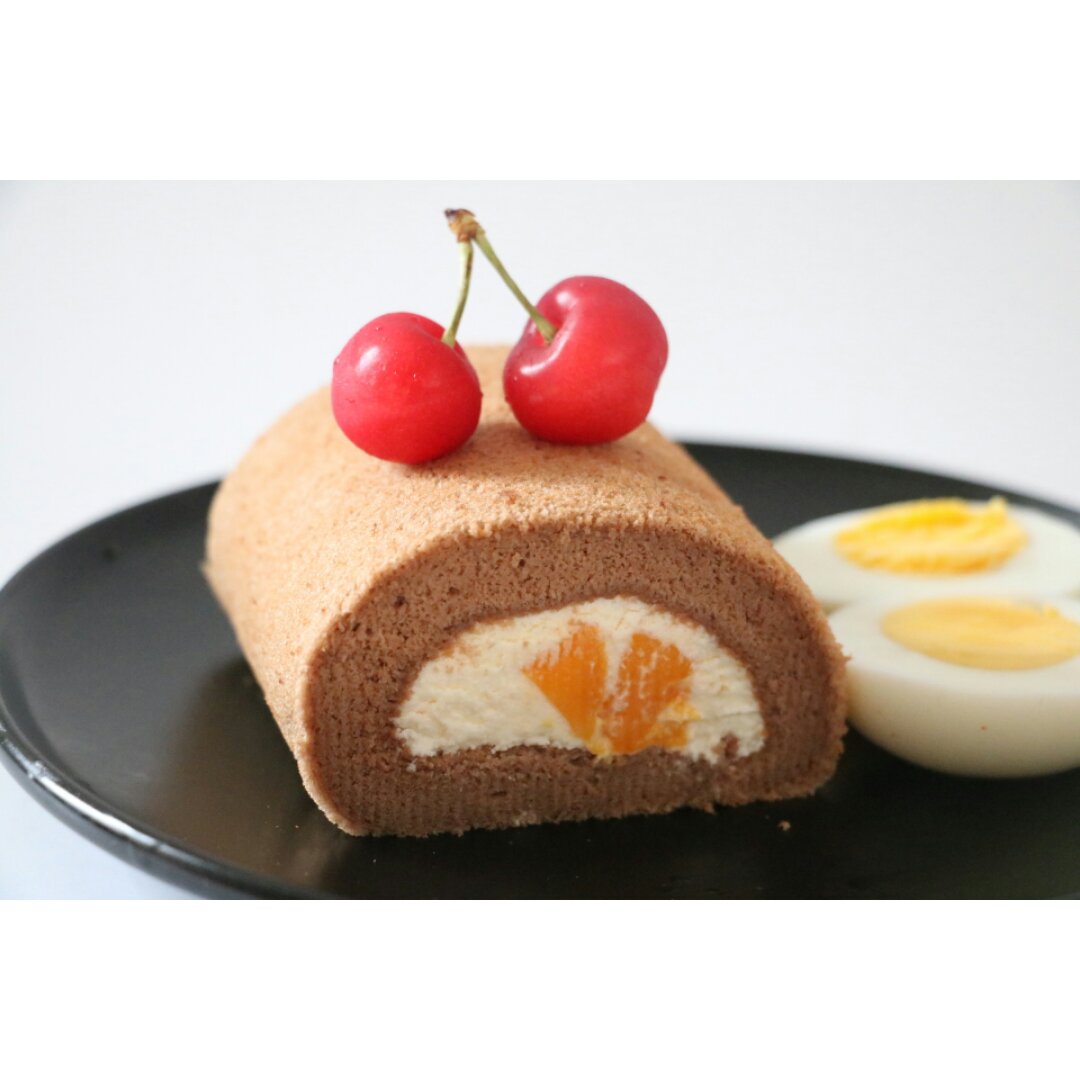 可可芒果蛋糕卷+鸡蛋+樱桃+芒果汁