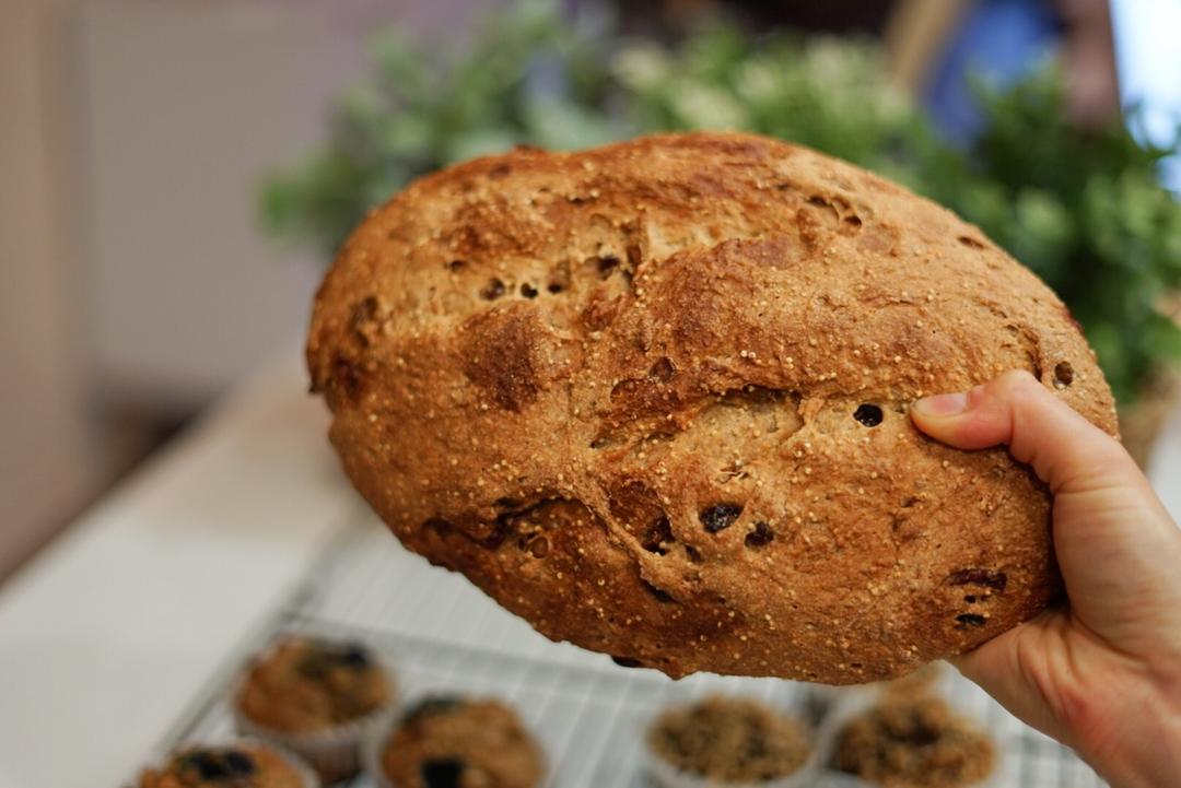 屯粮:五分钟健康面包系列,烤小米100%全麦多果干面包。烘烤到深金黄色的小米加进冷藏发酵48小时以上的面团里,还有超多的...