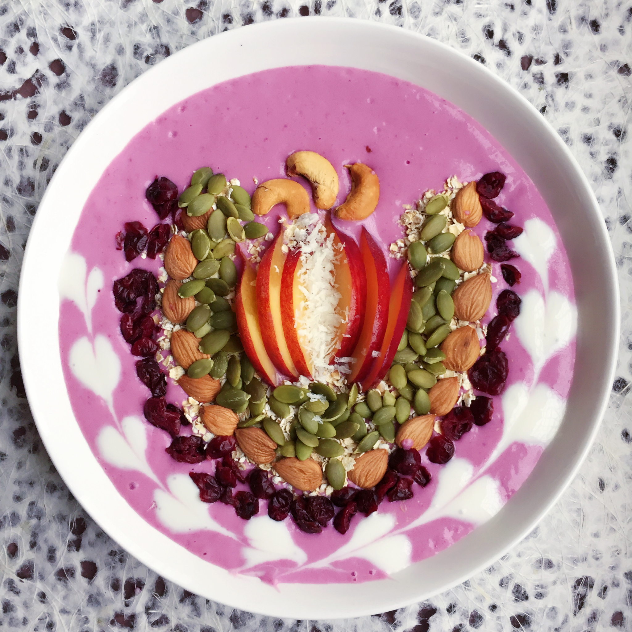 紫薯 蓝莓 木糖醇酸奶打浆😙油桃 腰果 南瓜子 杏仁 燕麦 蔓越莓 ٩(❛ัᴗ❛ั⁎) 紫薯蓝莓思慕雪 真是好喝棒呆...