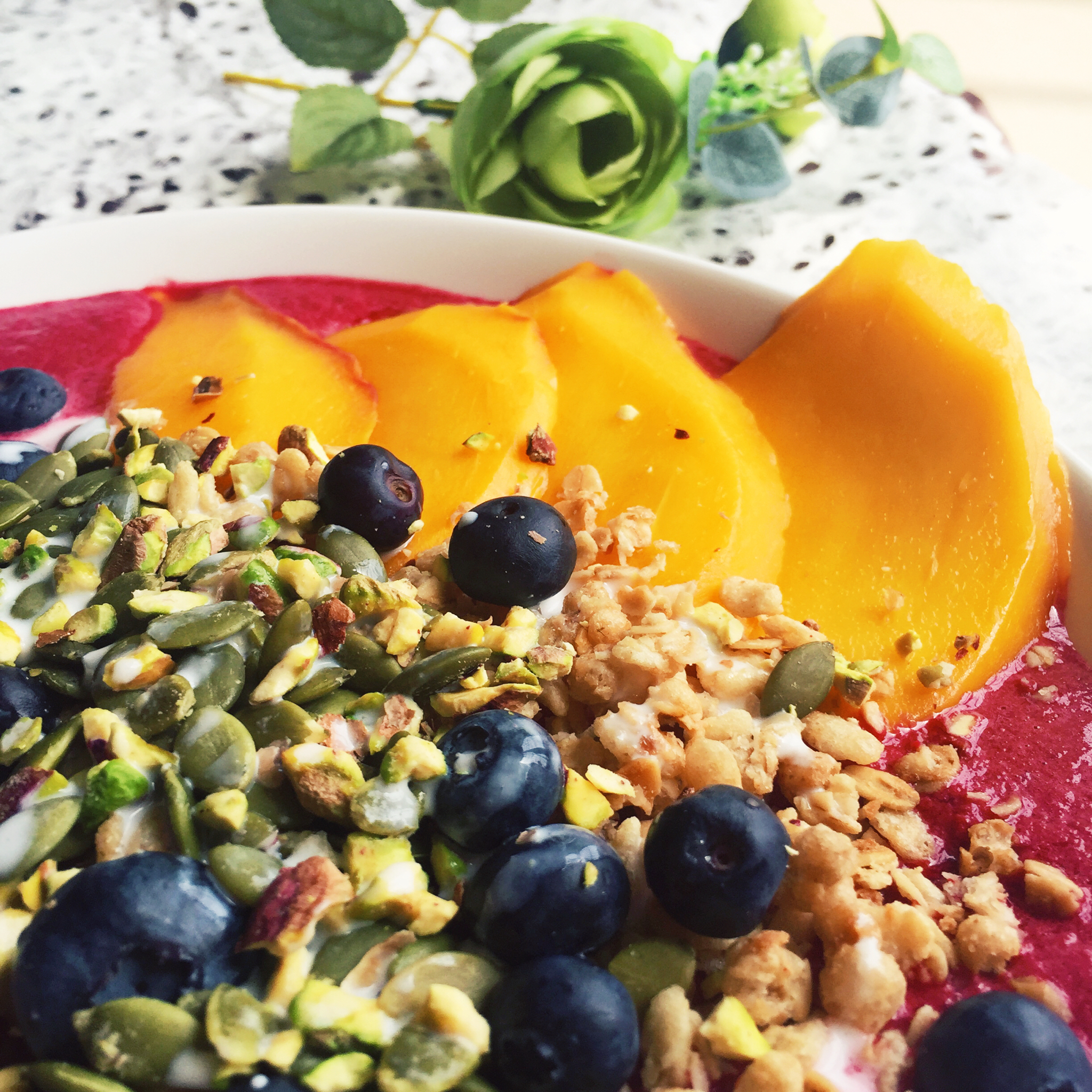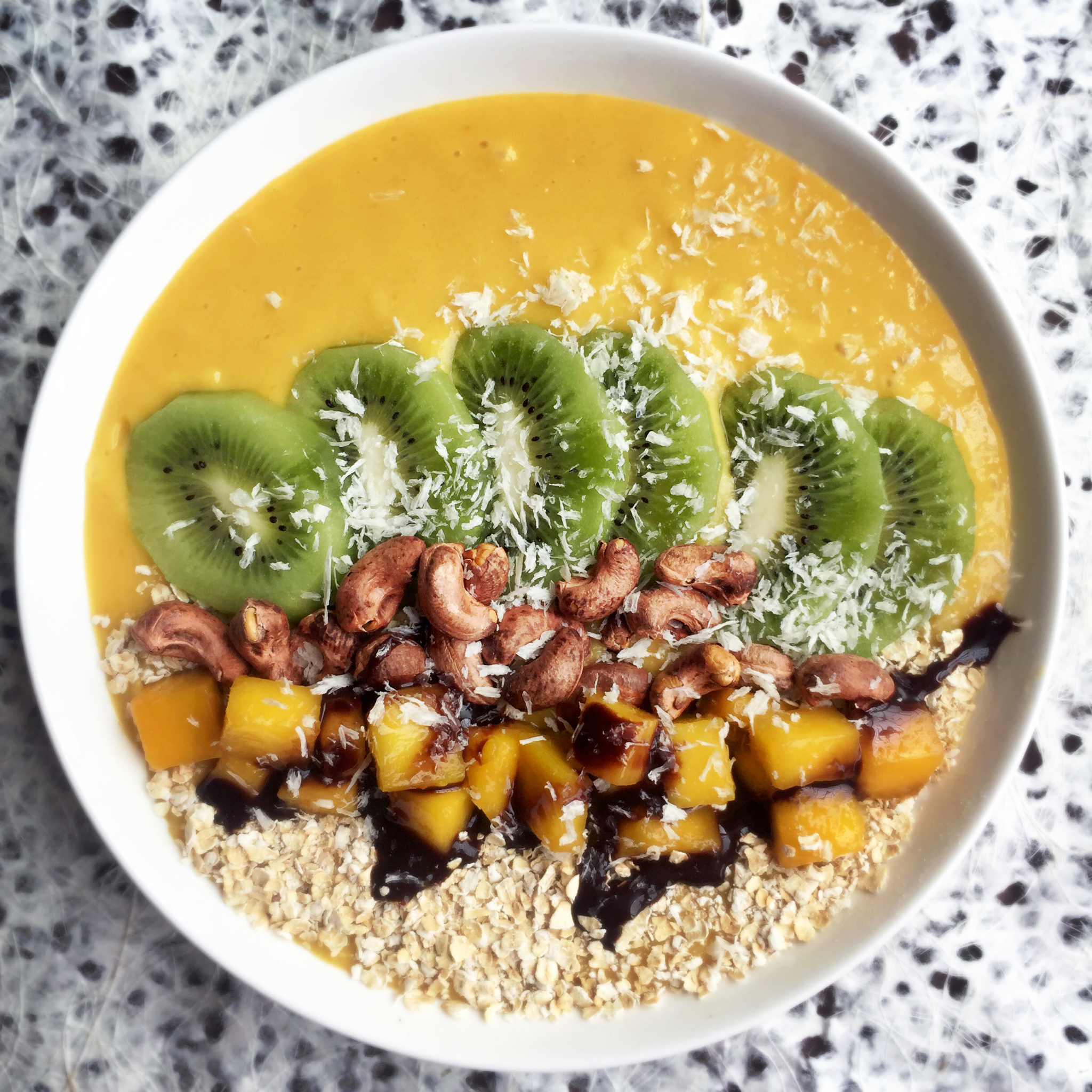 今天是清清爽爽的芒果酸奶思慕雪 🍹猕猴桃 原味腰果 芒果粒 燕麦 巧克力🍫酱