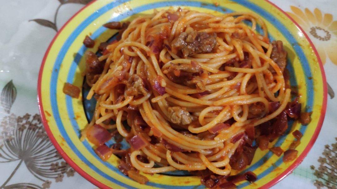 孩子炒的茄汁意面,色香味都不错,赞一个!遗传😊顺便自赞😜
