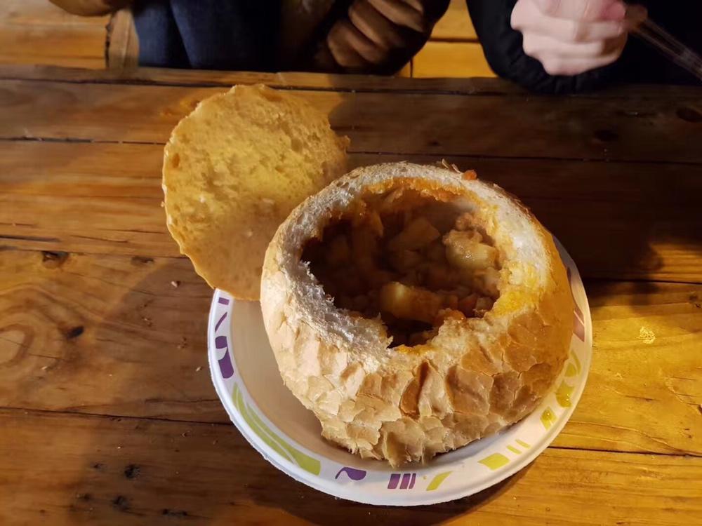布达佩斯的Gulasch. 外面的面包硬,里面的肉很香,很软,很好吃。寒寒的冬日里,吃着很适宜。