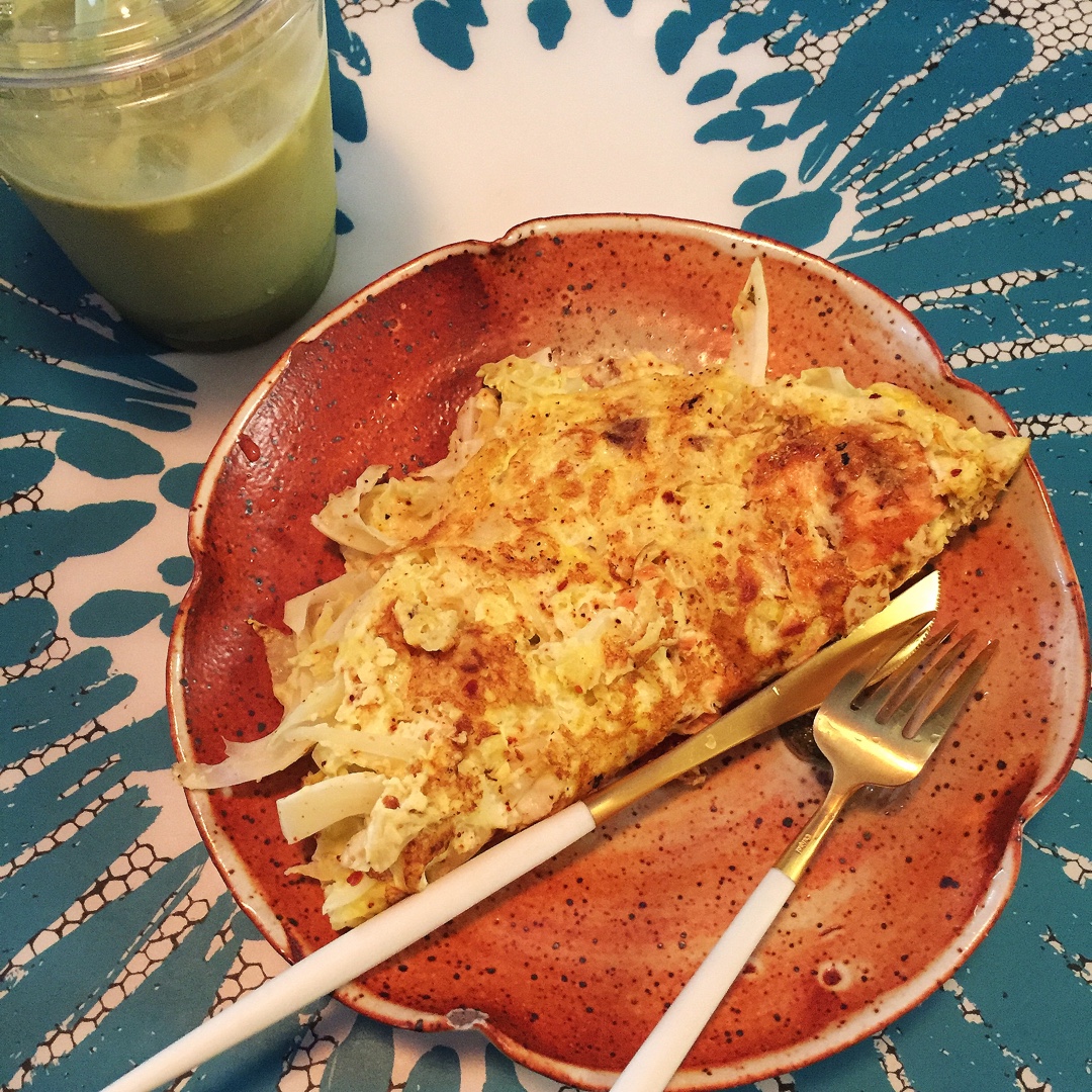 也没什么大事,就是分享分享一些话。继续三文鱼皱叶甘蓝欧姆蛋。前天剩的抹茶frappe,自己加了好多冰块和杏仁奶可算不甜了...