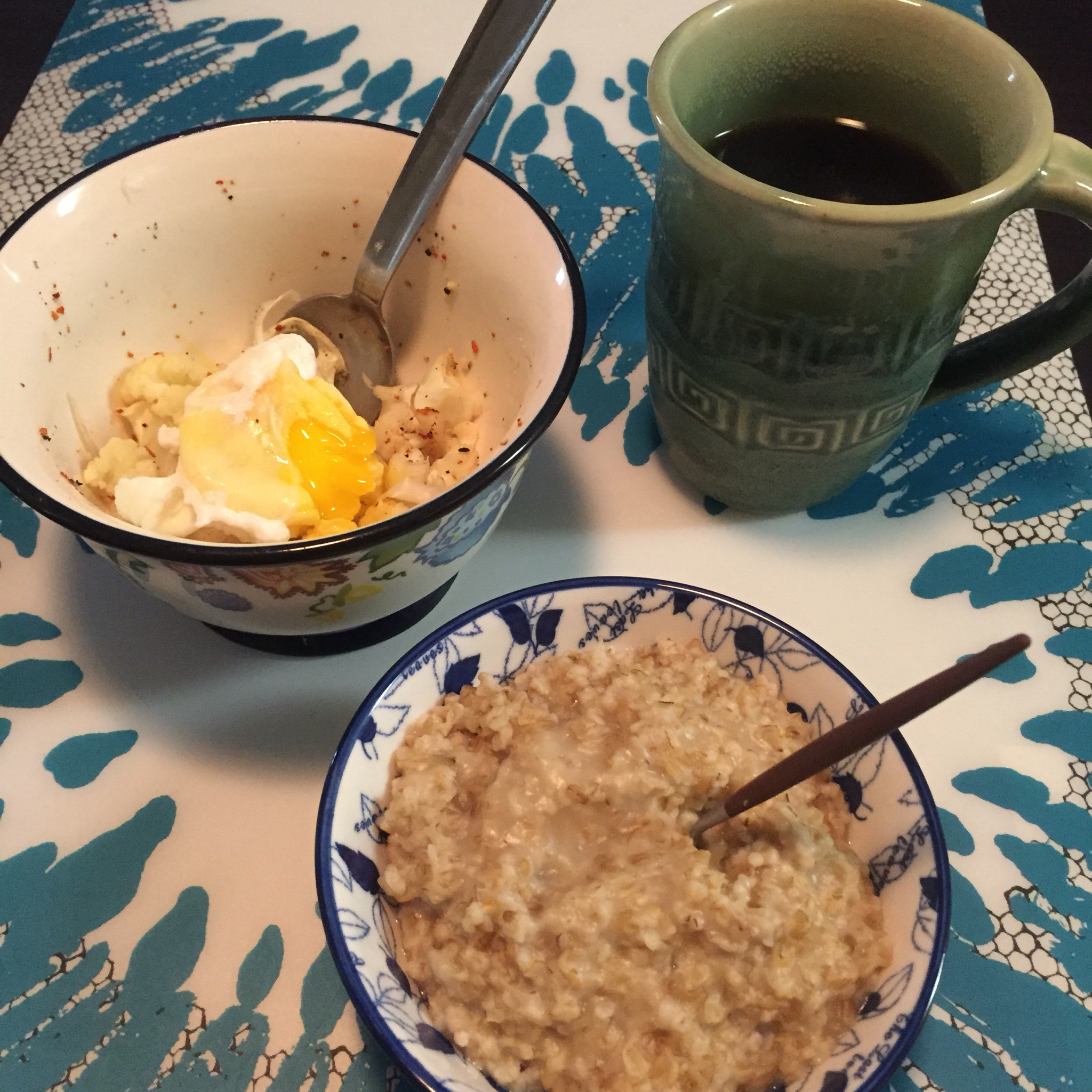 当冰箱空了的时候早餐怎么吃:菜花鸡蛋,钢切燕麦,科纳手冲咖啡。然后⋯⋯我去Costco花了一百七十多刀买菜买肉买奶买鸡蛋...
