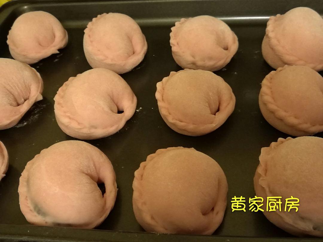 豆沙包:用火龙果皮打汁和的面,蒸之前是粉色的,蒸好就变回原色了...