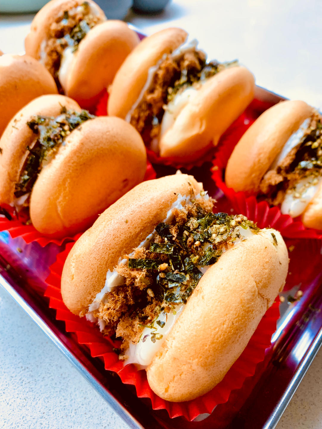 红红火火,芋泥肉松麻薯馅