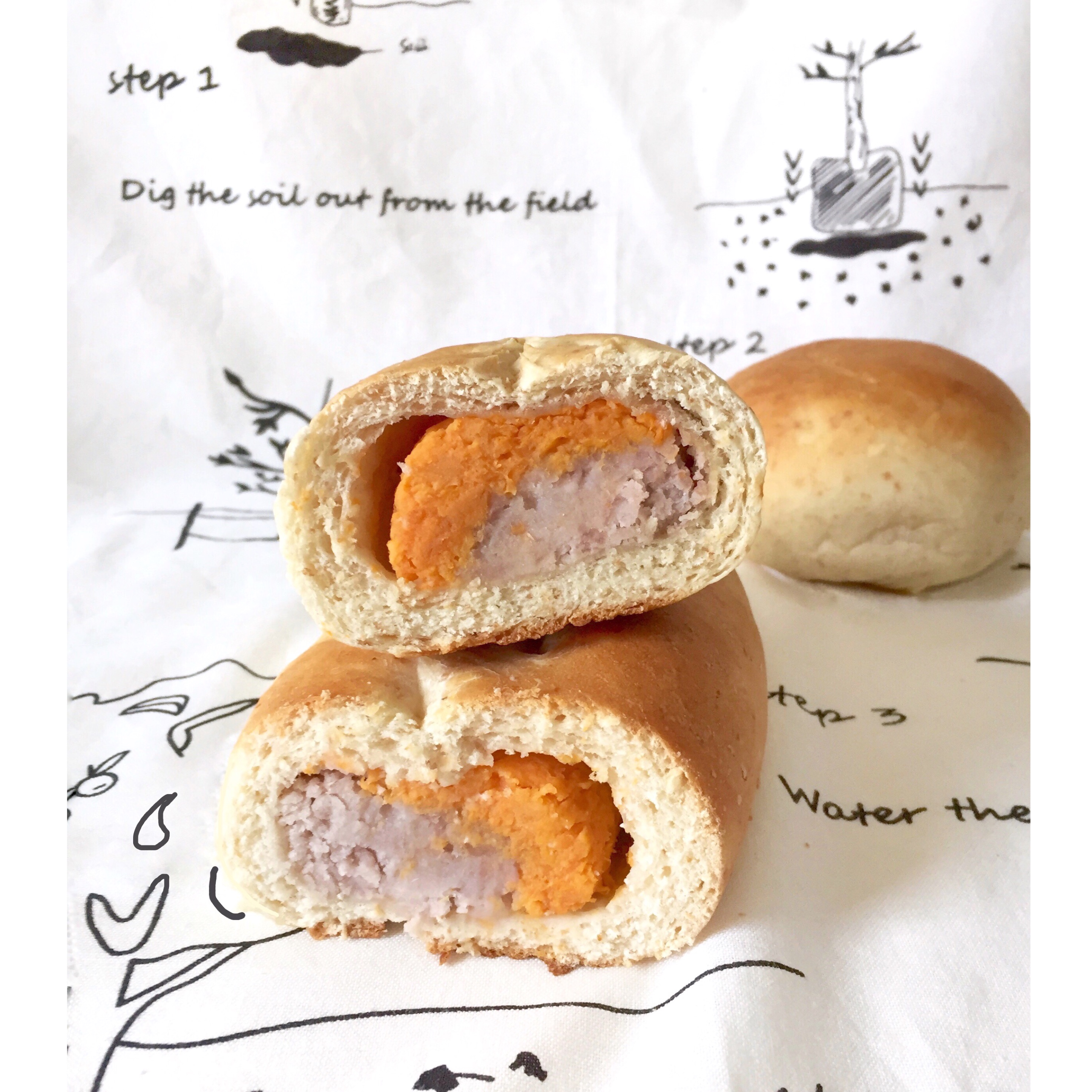 感觉馅塞得有点满,皮擀得有些薄,吃不太出面包的口感来😑。芋泥馅还是不够甜,如果加些炼奶应该会更好...