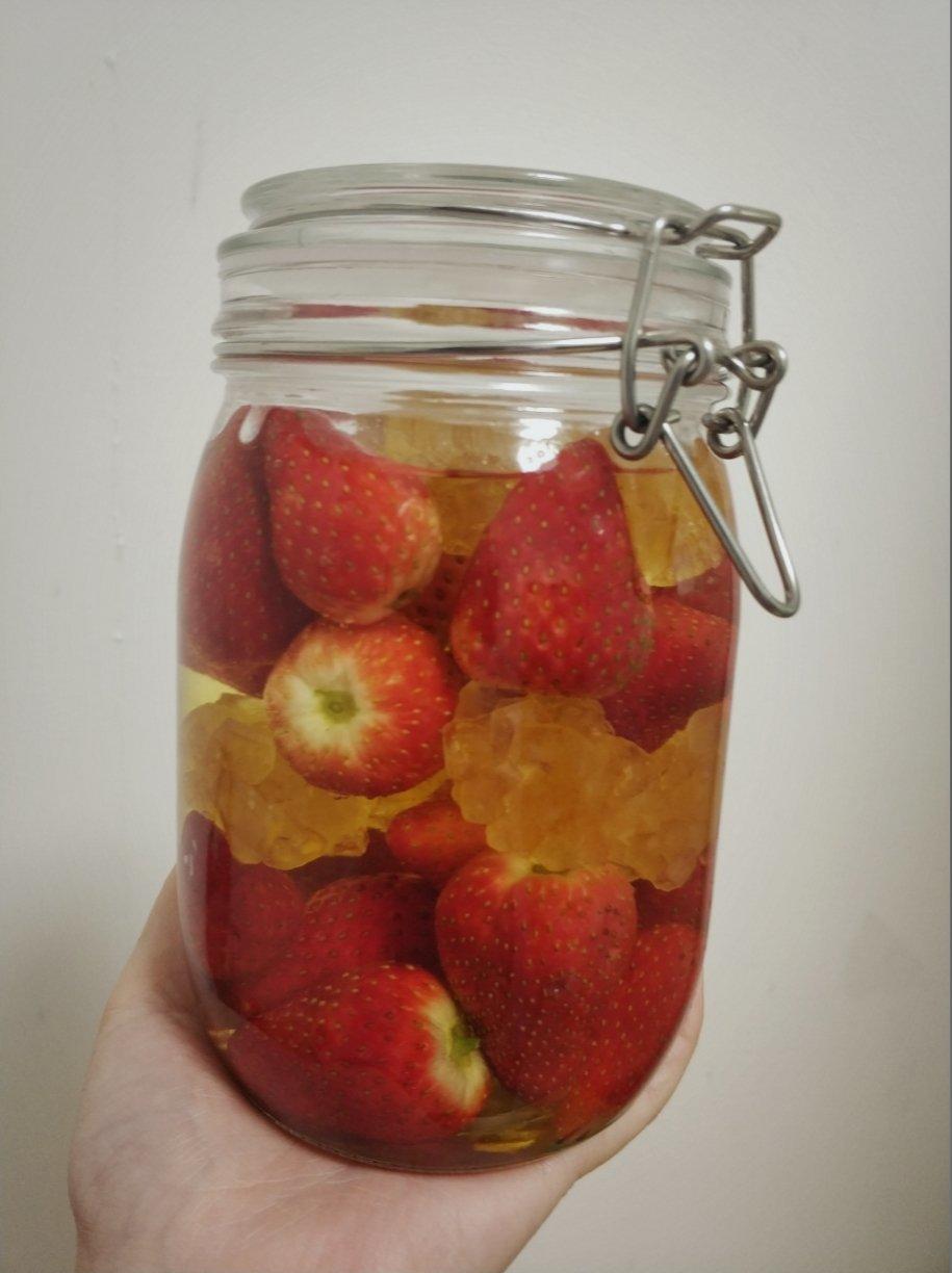 跟着抖音做了低浓度的草莓酒🍹