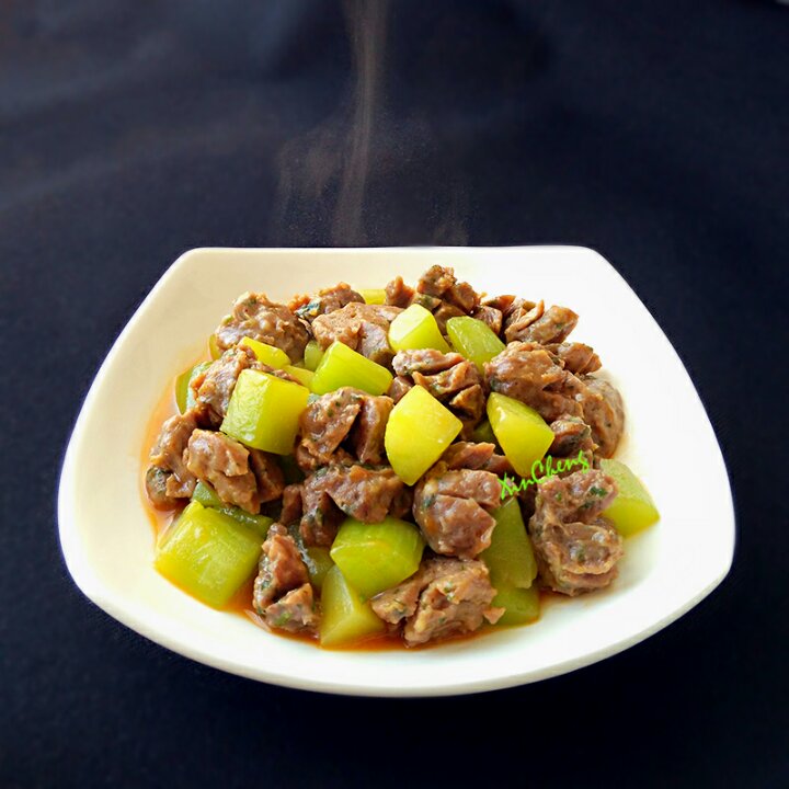 切得木卖相的牛肉丸配上清爽的莴笋,味道和口感很不错啊😄😁
