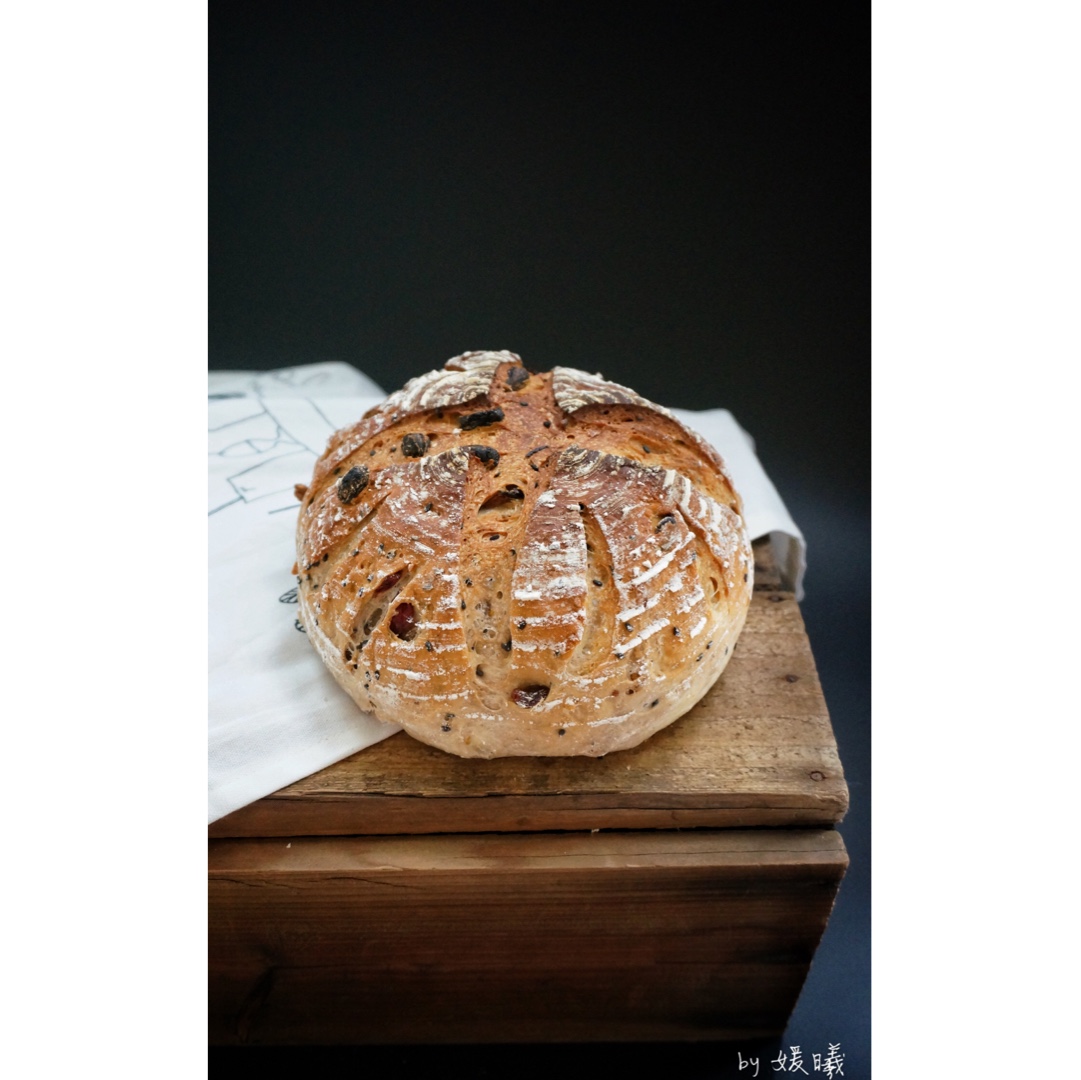 又拔了一个收藏了N久的方子,全麦➕黑芝麻一起好香,我撒了很多葡萄干,一项拒绝软欧的陈先生都一口气吃了半个😄 #午餐•20...