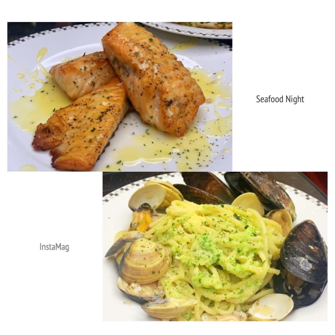 香煎三文鱼+海鲜意面