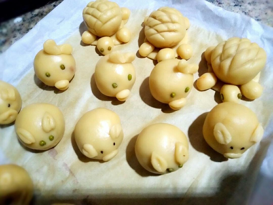 昨晚上加班烤的卡通月饼,一个没看好,上色有点深了😰!