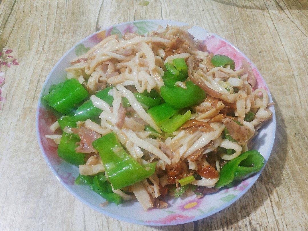 昨晚剩下的烤鸭和白玉菇撕成丝一起炒,加了花椒非常香~