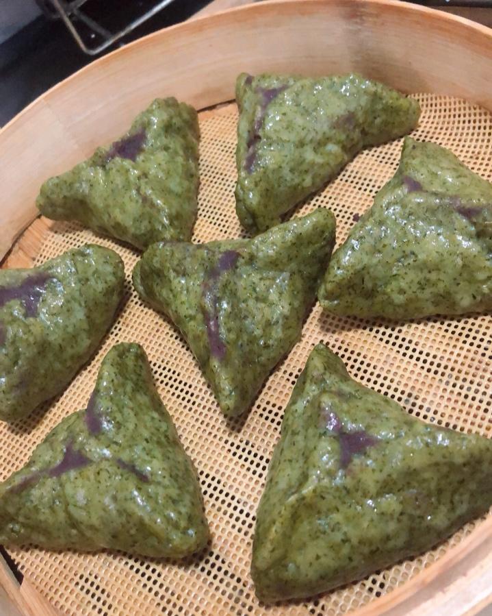 采了鼠耳草,做了甜馅儿的清明果;挖了春笋,做了咸味的清明果。