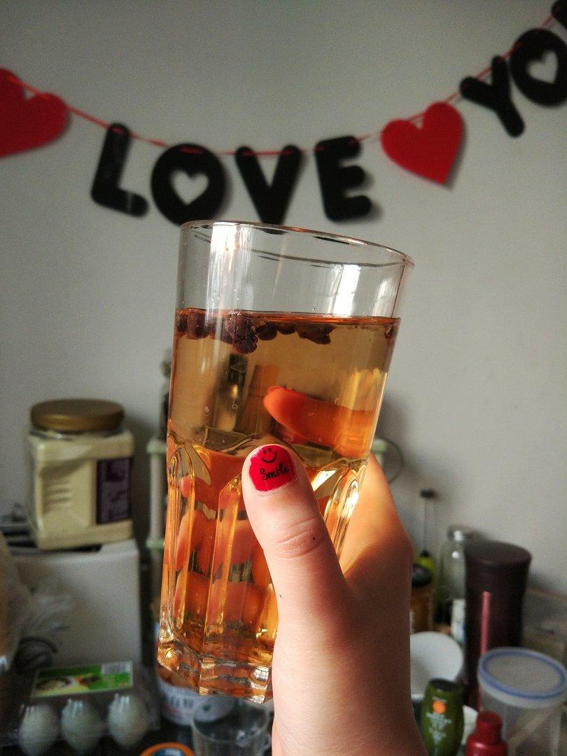 刚泡上的样子。刚才不小心把酒洒出来了,弄了一桌子一手,...