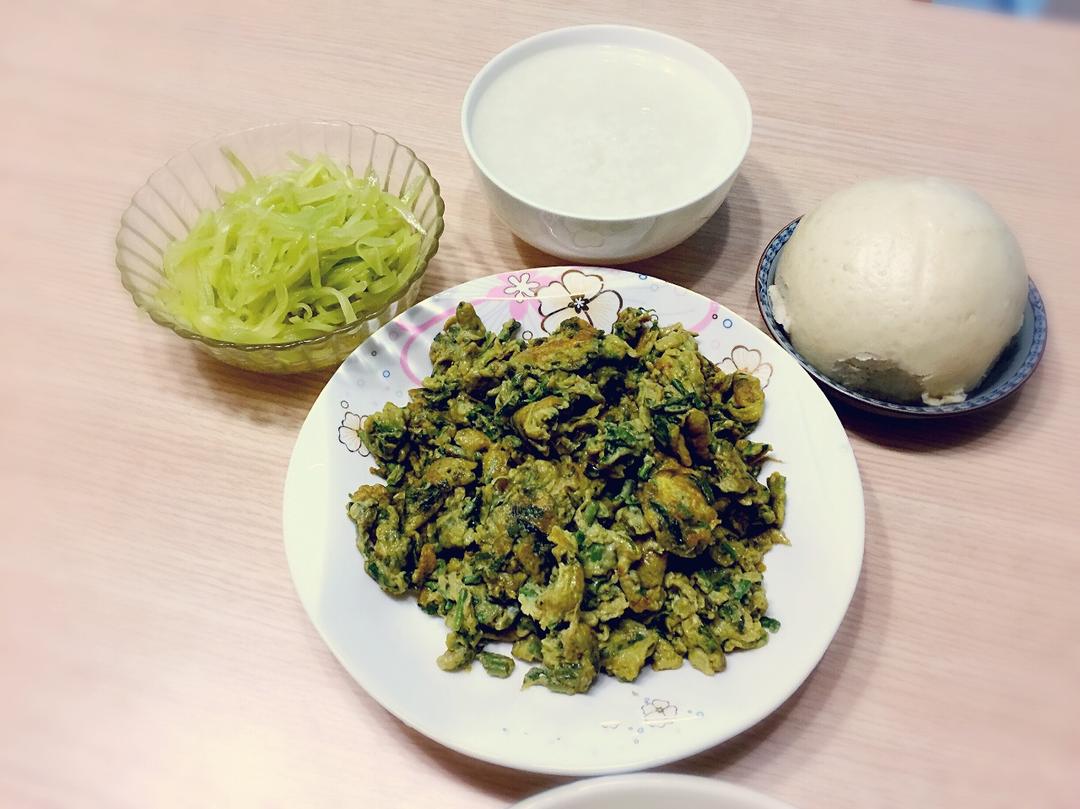 第七天打卡:白粥+香椿炒鸡蛋+凉拌莴笋、配上白馒头!安慰下依然不舒服的胃,顺便薅下春天的小尾巴! #早餐•2017年4月...