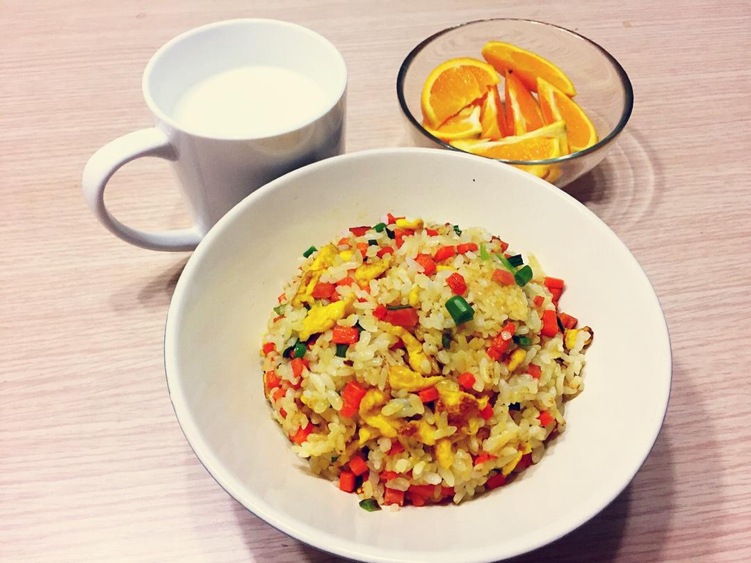 第五天打卡啦:炒米+牛奶+橙子!今天起的有点晚,这个简单快手😋