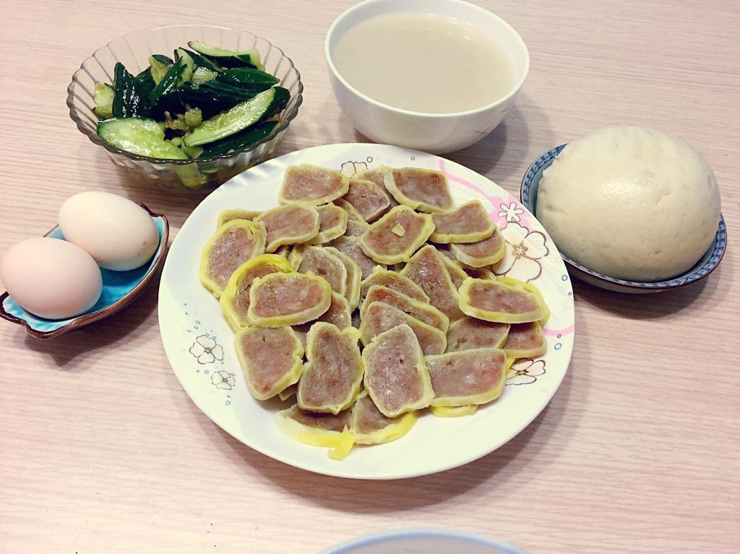 打卡时间:大米燕麦粥+蒸肉卷+白煮蛋、凉拌黄瓜+自己蒸的馒头!一顿满足的早餐让人心情会更好! #早餐•2017年4月26...
