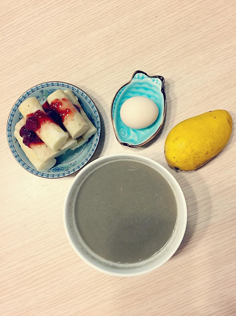 杂粮米糊+蒸山药+白煮蛋、再来一个芒果😋一个人的早餐还真有点不习惯