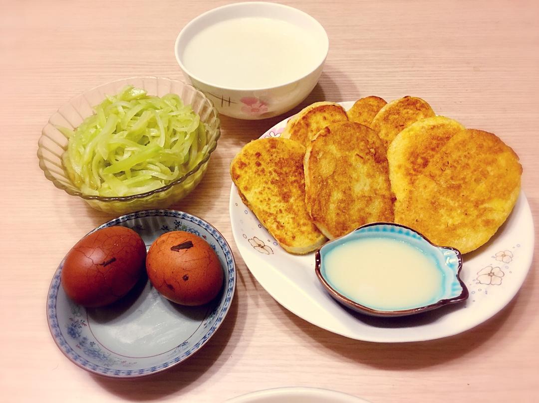 第三天打卡:白粥+煎馒头+茶叶蛋、凉拌莴笋!