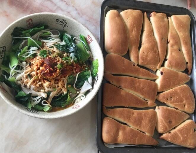 隔夜冷藏酵母版的纯素蔓越莓司康+油泼面🍜