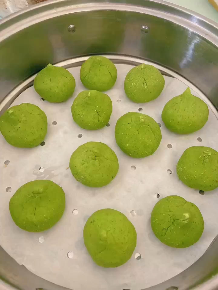 清明前的艾草和簕菜最为鲜嫩,采上一把,水开加小苏打烫一分钟,破壁机加水打碎,加糯米粉澄粉揉成团,包上咸蛋黄肉松馅,水开蒸...