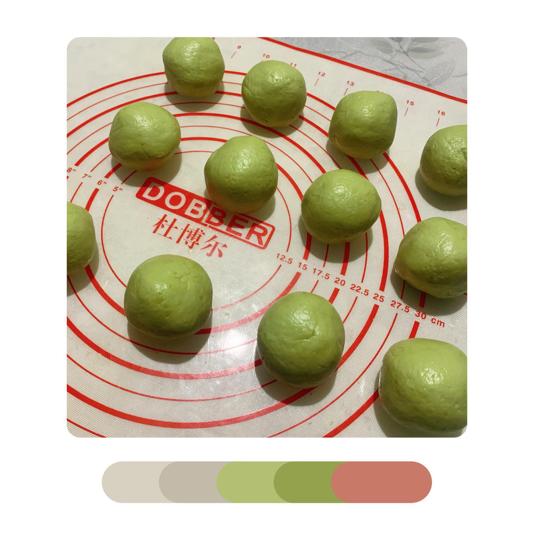 用泥做的,吃不出艾味,下次加量,肉松咸蛋黄馅。艾:焯水30秒,马上泡冷水(水加一小勺苏打)再清洗一次,抓干水入料理机加2...