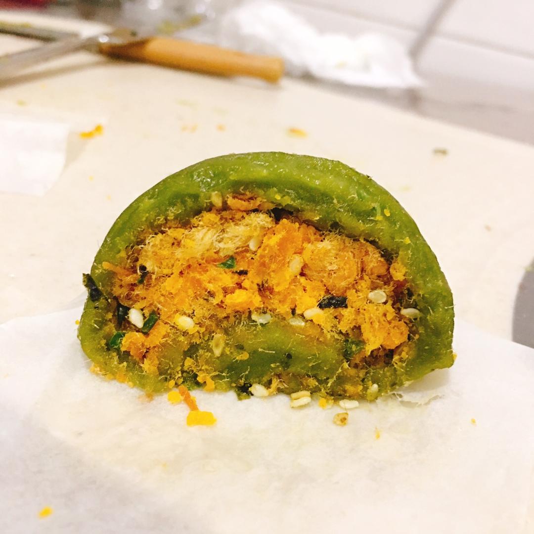 #咸蛋黄肉松青团#