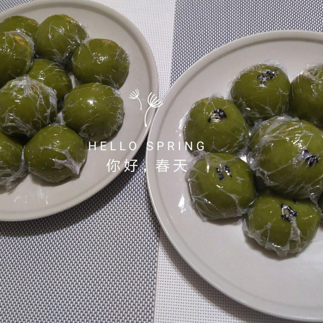 好吃的青团~~~豆沙馅和咸蛋黄肉松馅儿的