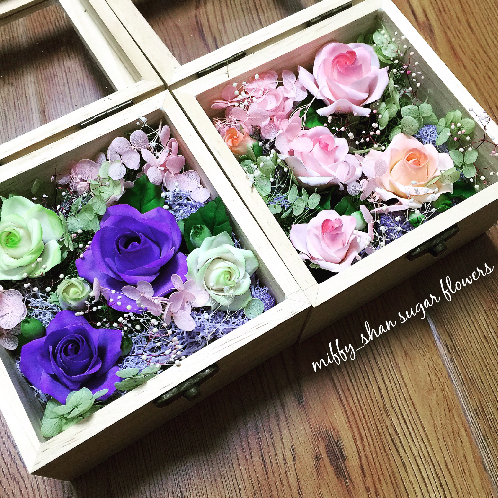 第二期翻糖玫瑰花盒课程学员的作品。一天的课程姑娘们棒棒的~马上母亲节啦~这样美美的花盒做给妈妈是不是更有爱呢~☺️ #午...