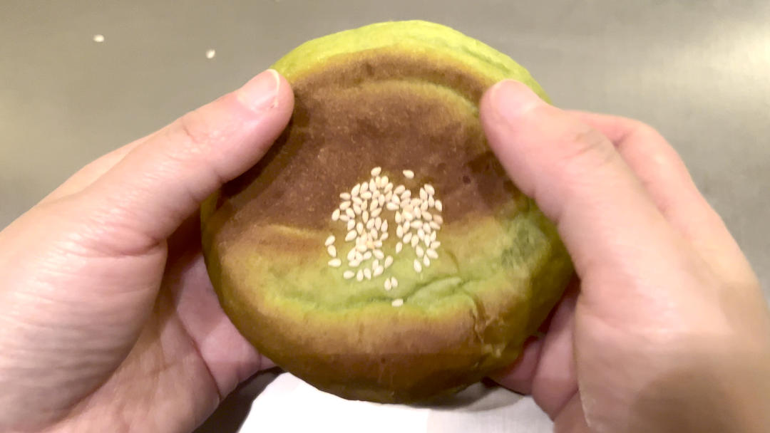 粗粝的外表下,有一颗温柔甜蜜香浓沉甸的特大芯儿!这是日式抹茶红豆包。