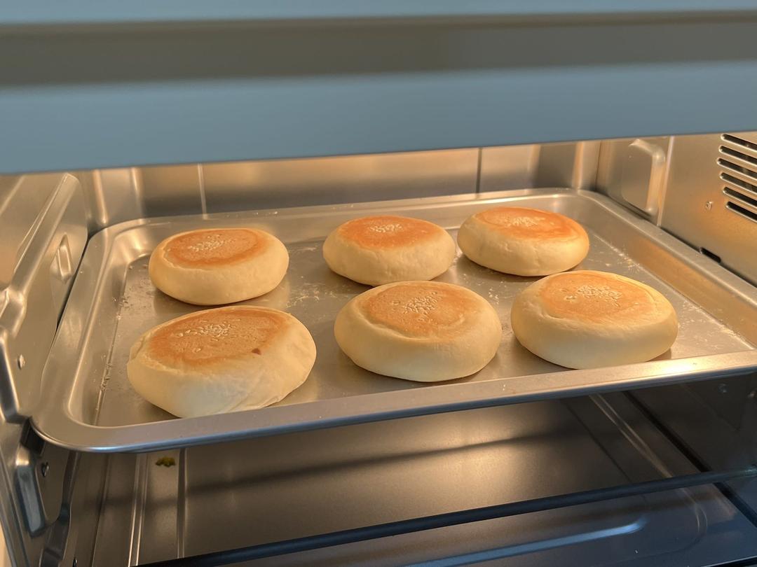 烤了两盘,上色没上好。里面还加了麻薯。面包很松软。好吃!