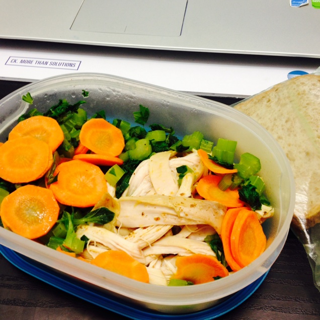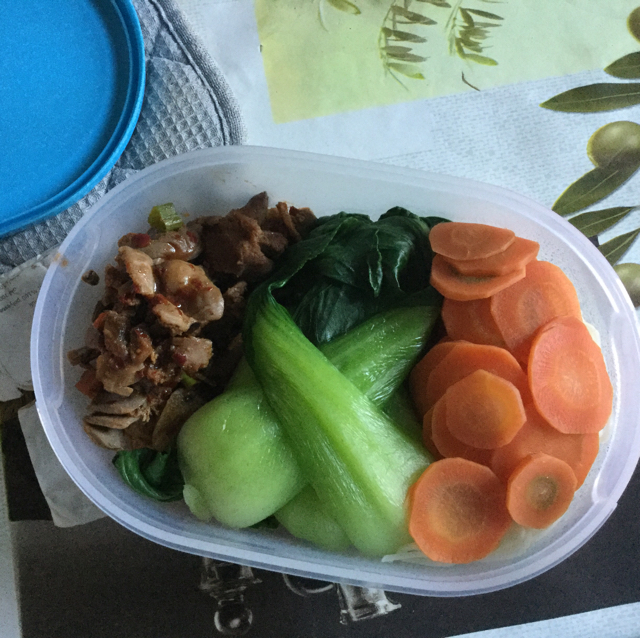 爆炒鸡胗,烫油菜胡萝卜,还有看不到的面条。五月继续加油!