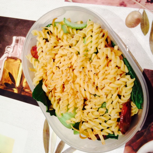 扒拉出冰箱里最后一颗油菜,离中超采购又不远啦~ 腊肠豆腐皮炒油菜+意粉 填满我滴中国胃 #午餐•2016年...