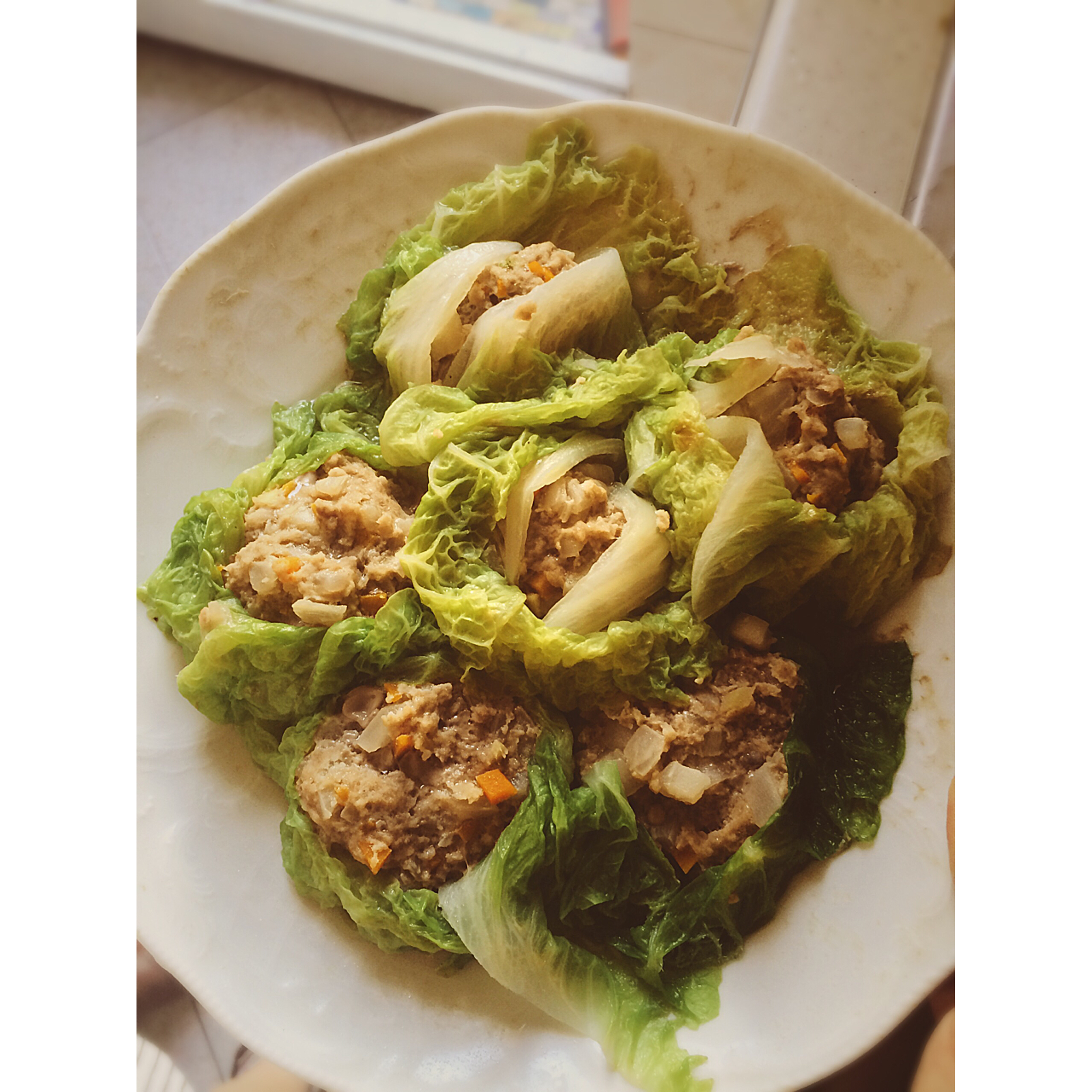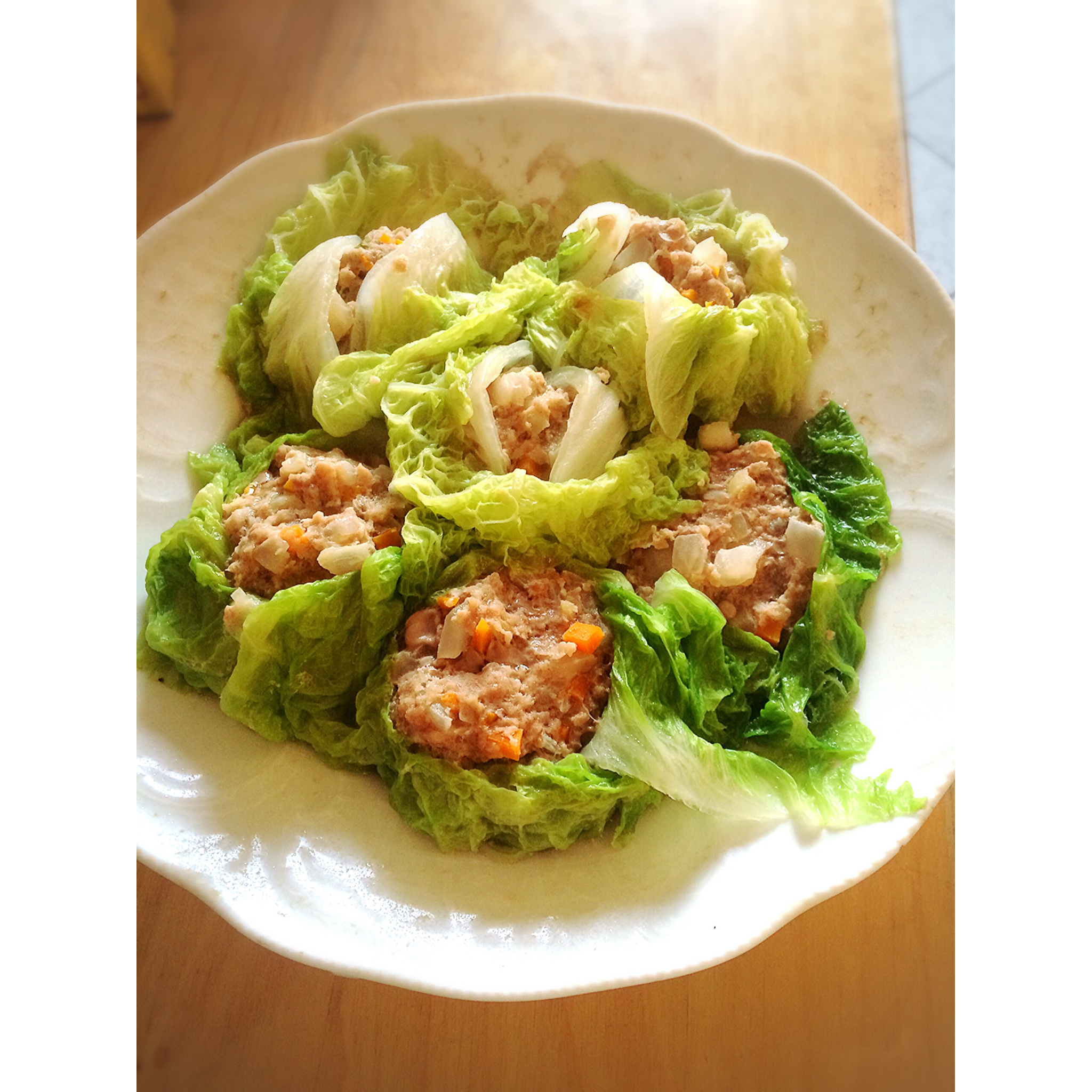 自认为白菜烧卖还原度能到80%,因为不吃菇所以换了胡萝卜丁,颜值特别高的一道菜。剩余的白菜煮了味增锅,能在天黑前吃上饭值...