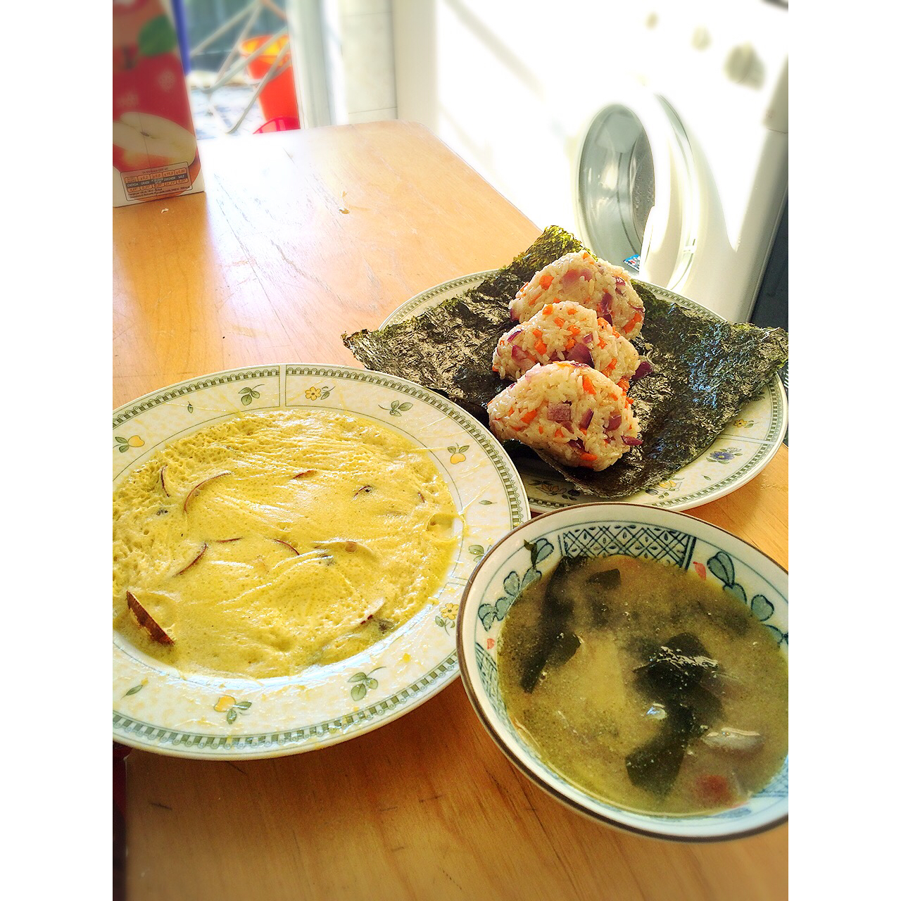 蛤蜊蒸蛋、蔬菜饭团和蛤蜊味增汤