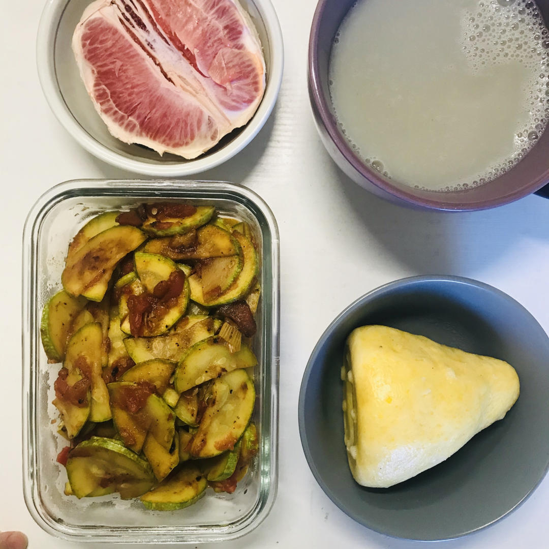 最爱点黑豆小米豆浆!最爱的番茄炒西葫芦!最爱的西柚!最爱的小米窝窝头!