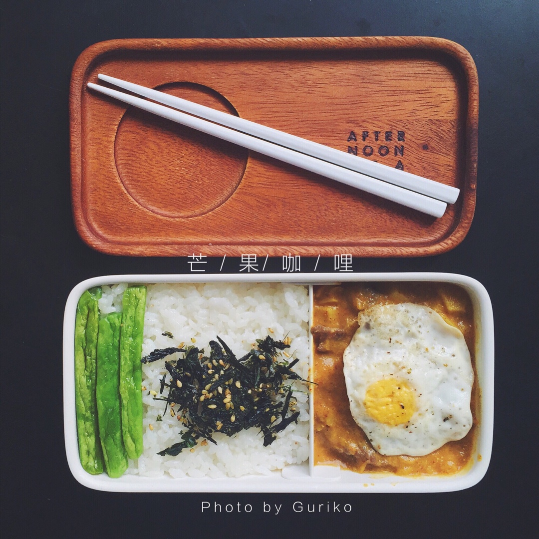 嗯~你们都看不到咖喱了哈哈哈,但是真的加了好大一勺芒果泥~觉得是适合夏日的味道~最喜欢吃咖喱~