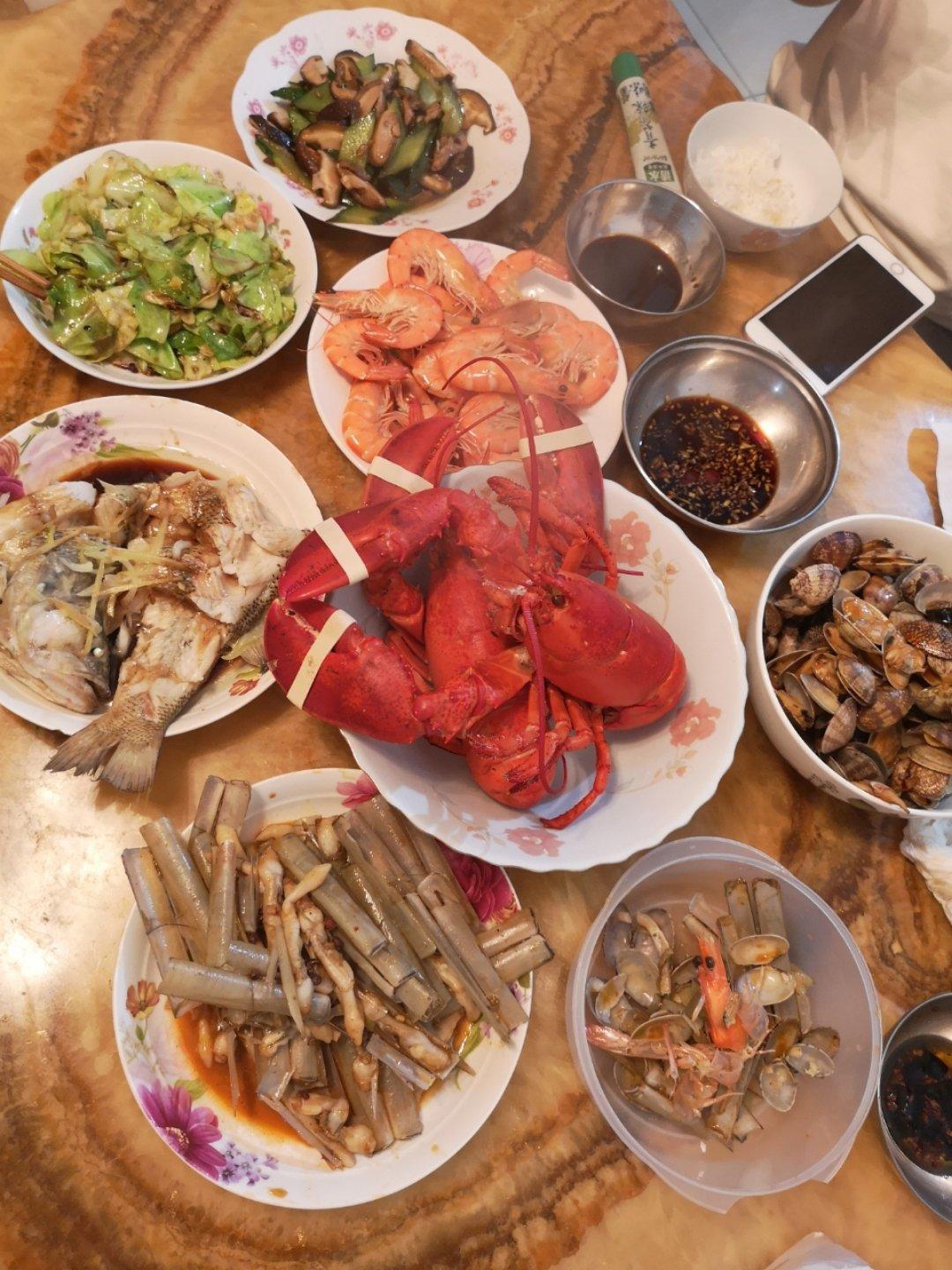 家人聚会,满满一桌的海鲜,又鲜又嫩超级好吃,好开心😁