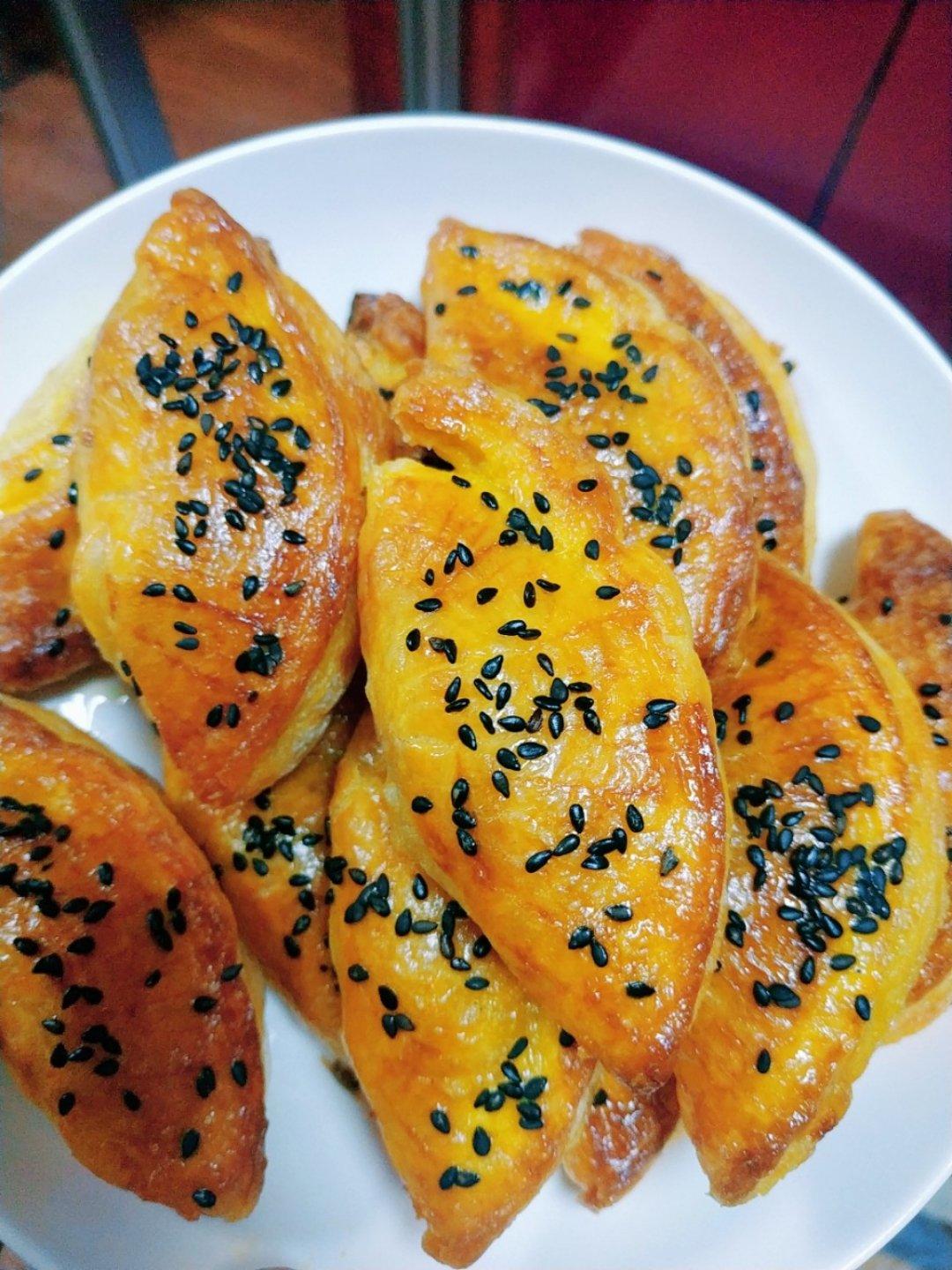 这大芒果深得我心,搞几个芒果酥吃一吃,用的是手抓饼皮。