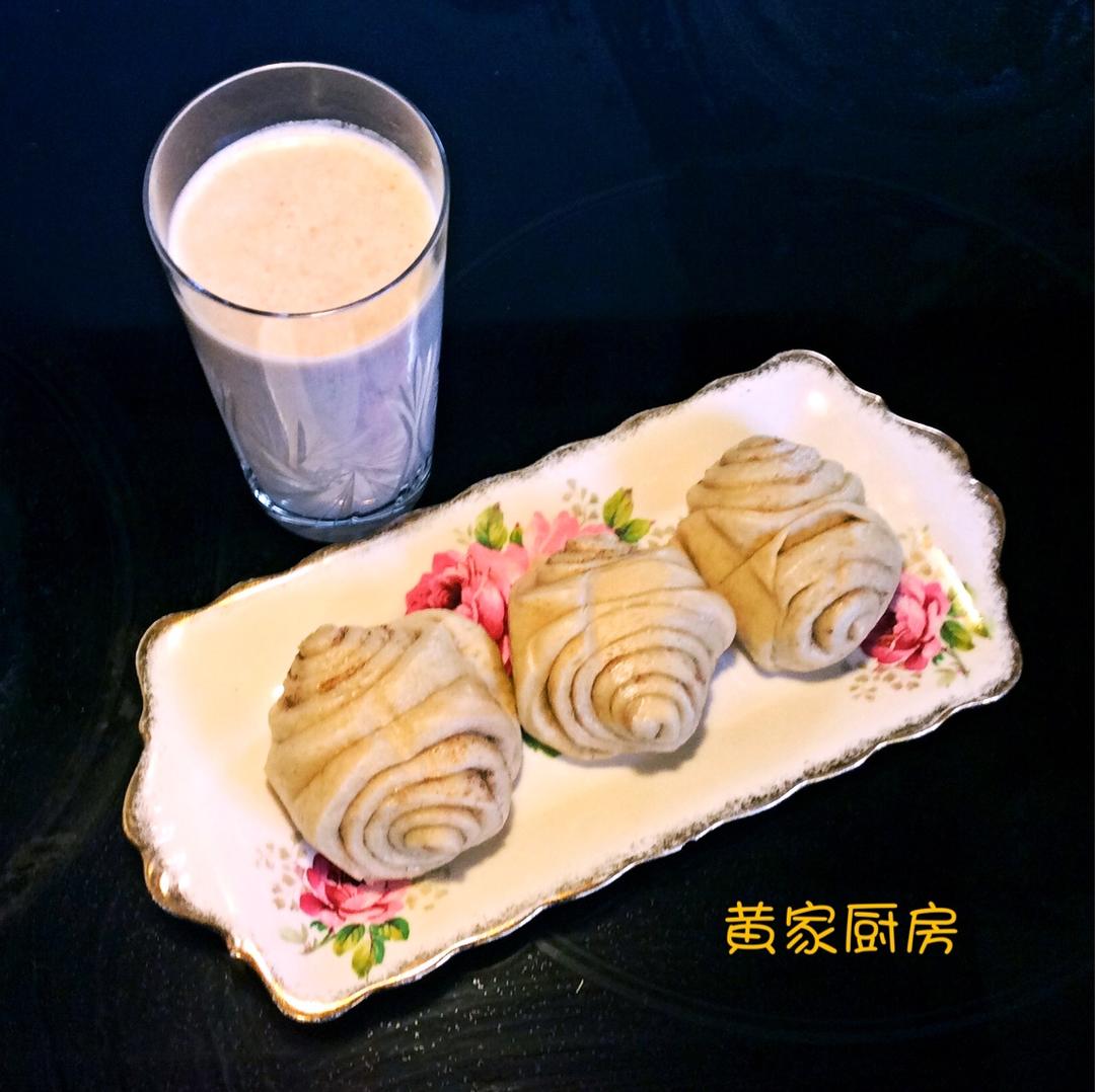 懒人版豆浆(花生浆)与蝴蝶卷:花生浆没过虑,蝴蝶卷是用的红糖,颜色不太好看,但味道还是不错的。