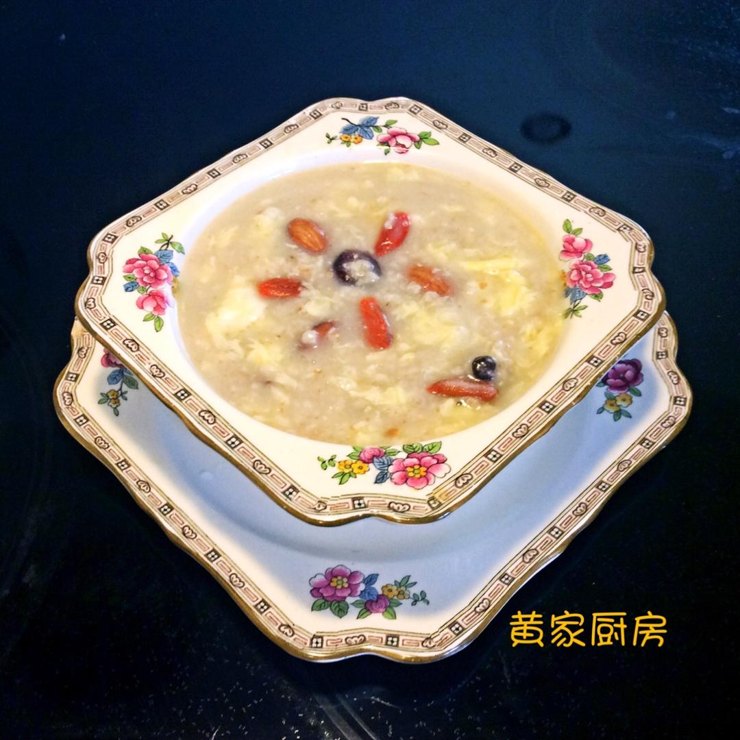 什锦麦片粥:加了果脯、坚果、亚麻仔和鸡蛋