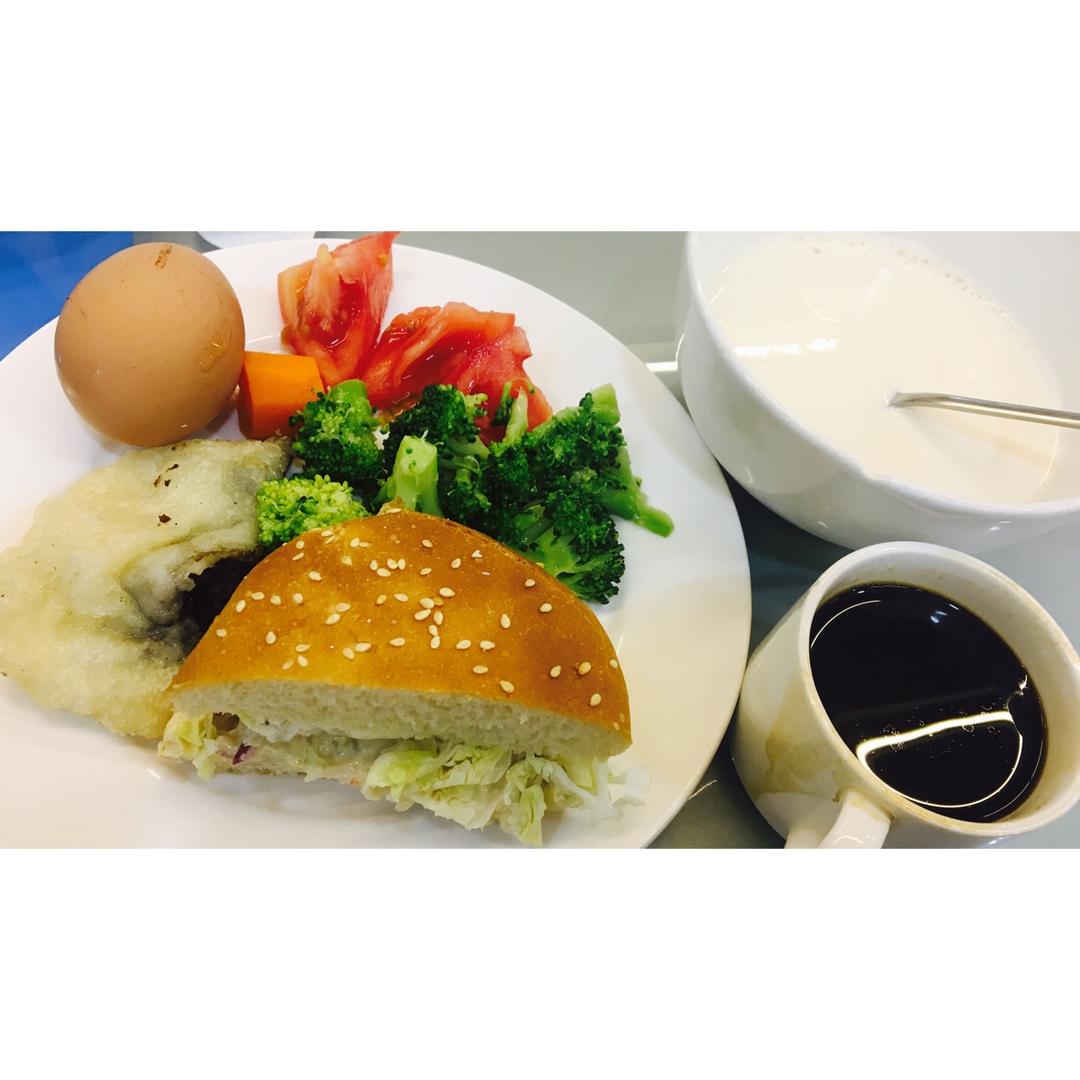 汉堡 蔬菜 咖啡 麦片牛奶