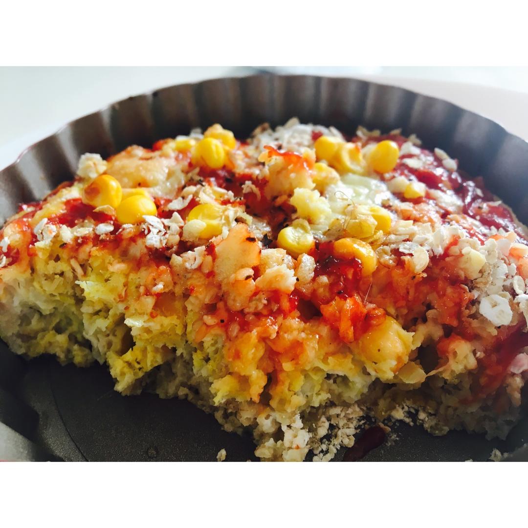 燕麦烘蛋小披萨~燕麦做底,倒上蛋液,搭配芝士玉米~