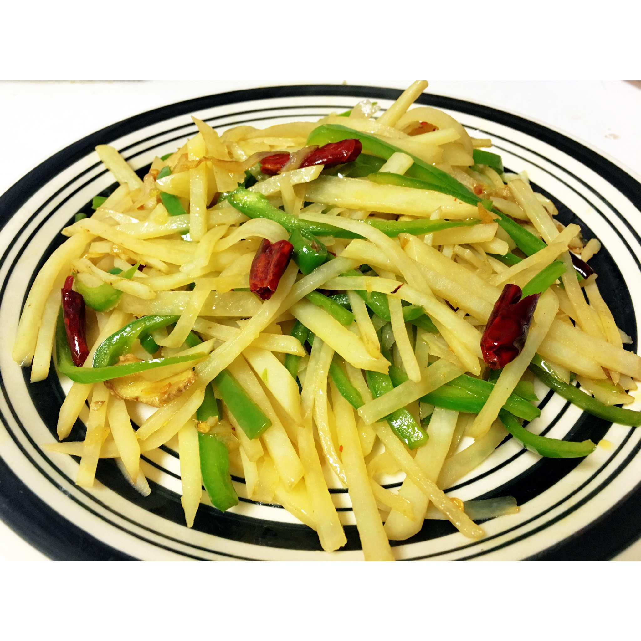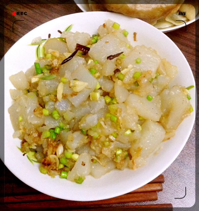 总结:切的太大,不够入味,沾锅沾的呀,估计油放少了,放的生抽,颜色太浅,但是碎碎的味道挺不错,放了三个辣椒,辣死我了。然...