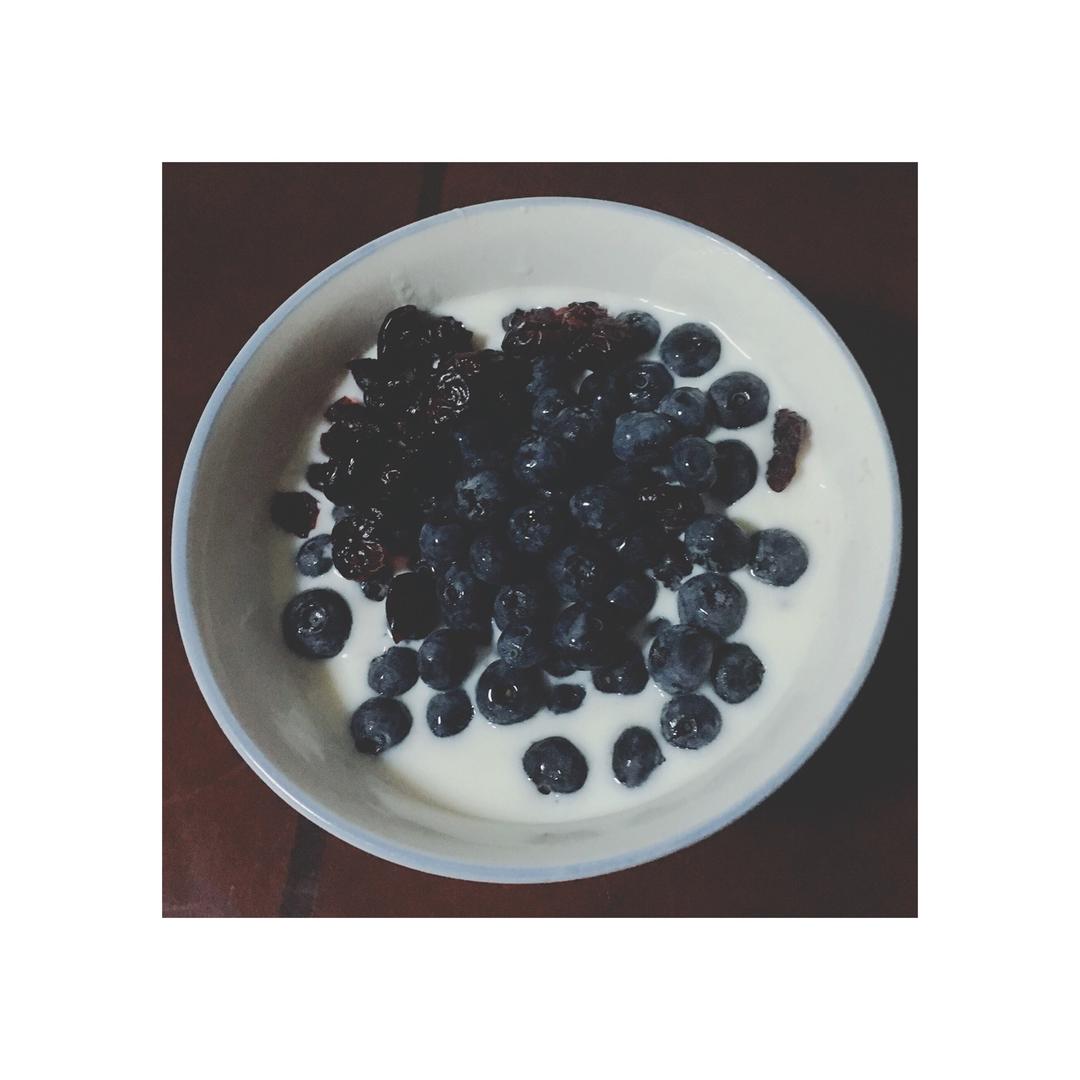 蓝莓+蓝莓酱+蔓越莓干+自制酸奶