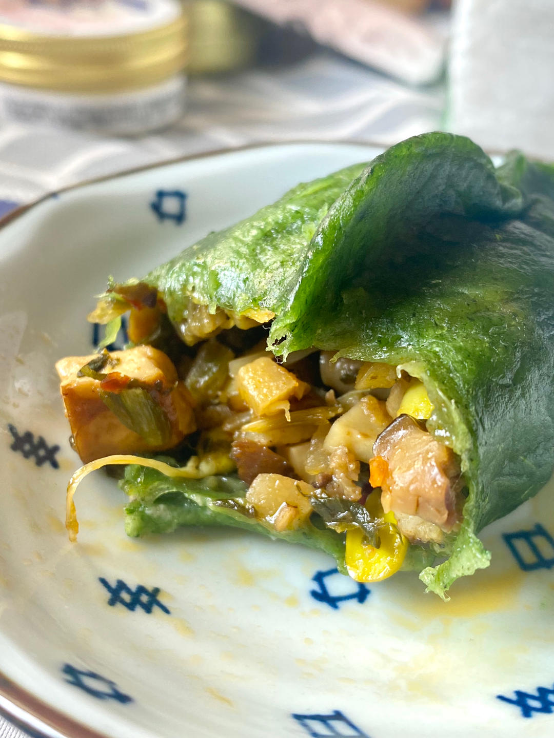 我的艾草青团颜色比较深,味道很浓郁。