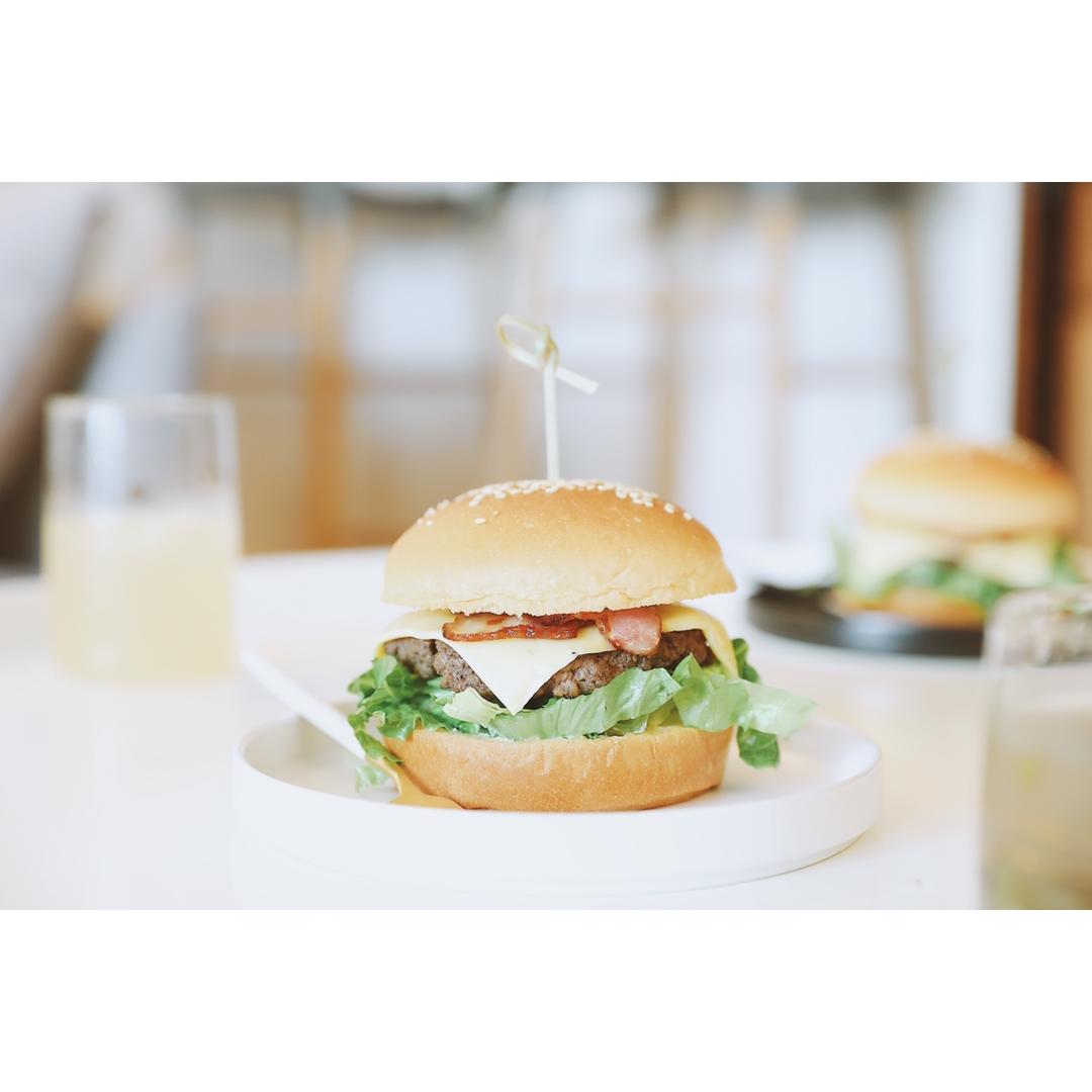 今天跟🐔约了汉堡,配牛排,生菜,番茄,煎透的洋葱,差一片芝士就完美了~~